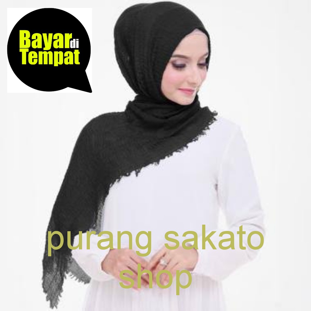 Hijab Pashmina Crinkle Warna Hitam Jilbab Pasmina Crinkle Warna